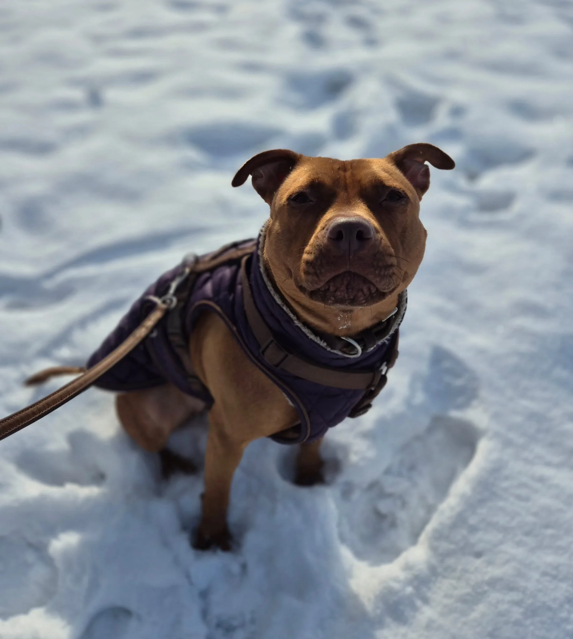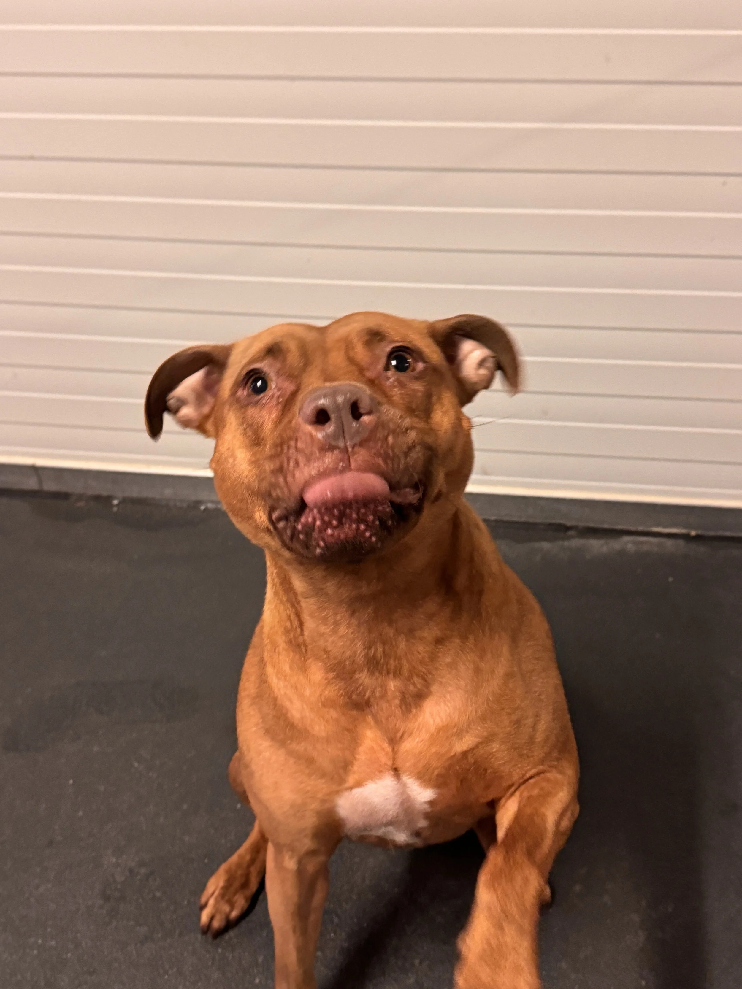 Unsere wunderschöne Pitbull-Hündin Skadi, 2 Jahre alt aus schlechter Haltung gerettet. Was sie in dieser Zeit ertragen musste, können wir nur erahnen doch Skadi hat sich eine bewundernswerte Stärke, Vertrauen und Lebensfreude bewahrt.