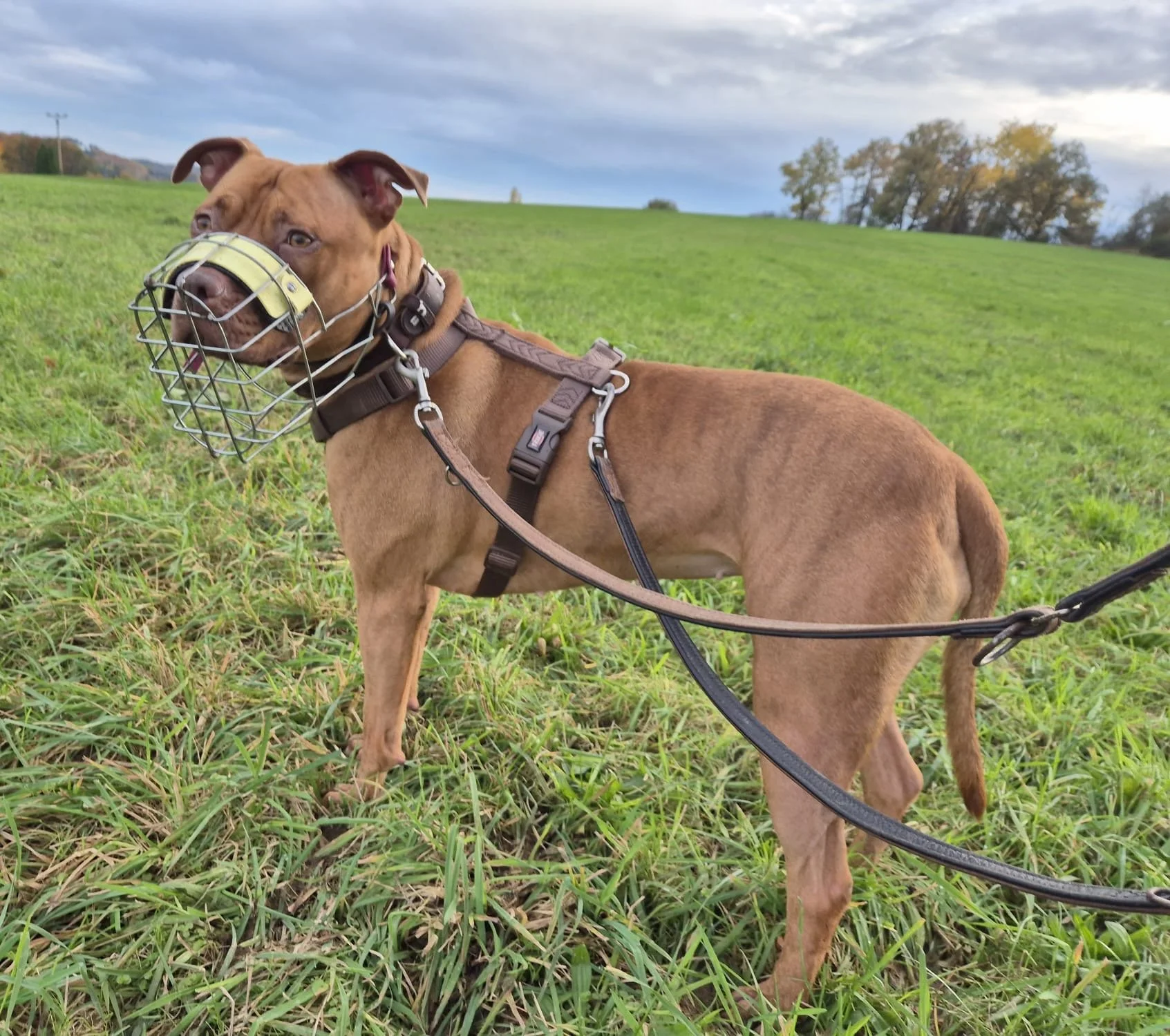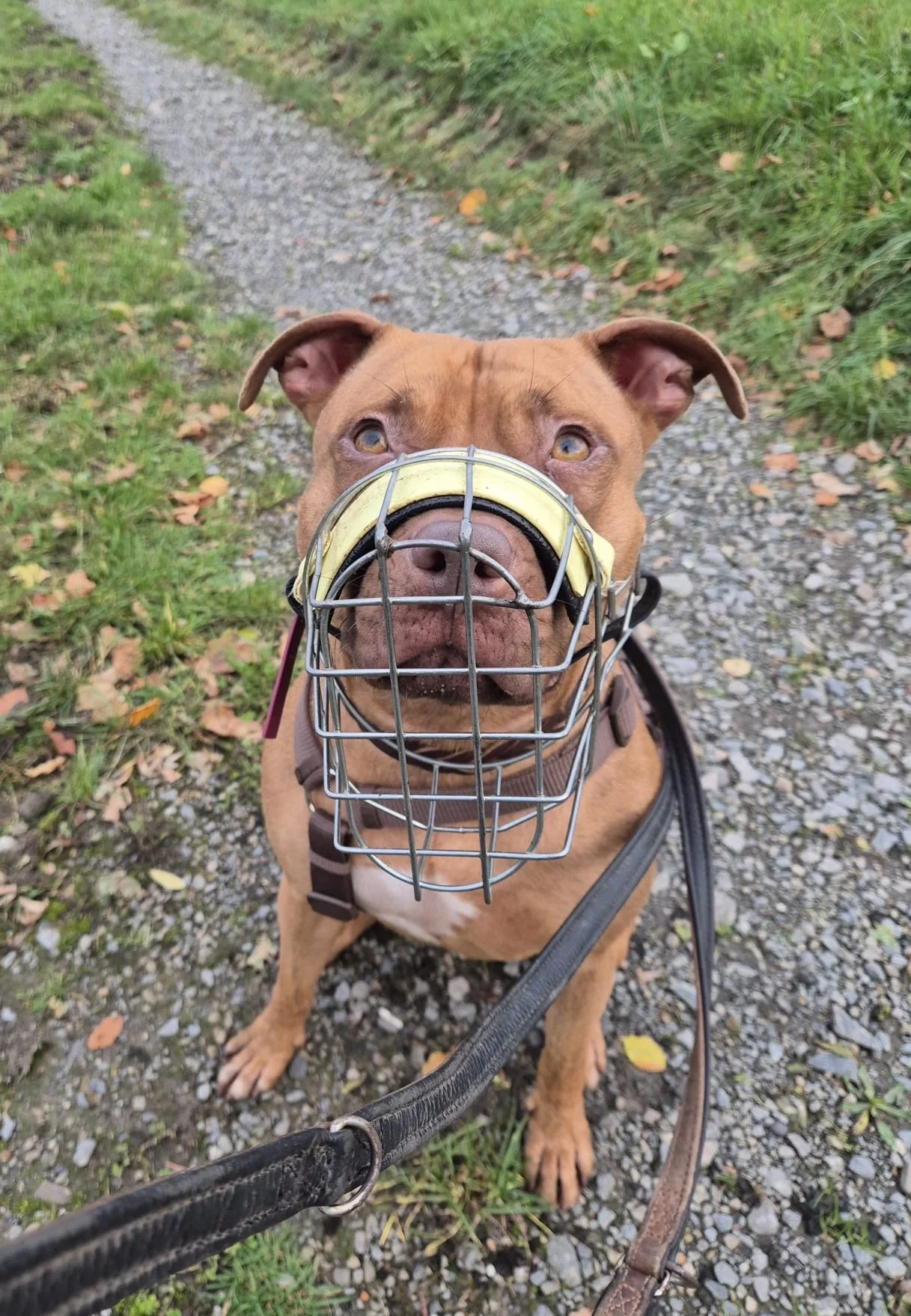Skaddi gehört zu einer Rasse aus §3 des LHundG und ist verpflichtet Maulkorb und Leine zu tragen. Die Vermittlung erfolgt ausschließlich an Personen welche den Sachkundenachweis nach §3 LHundG vorweisen können