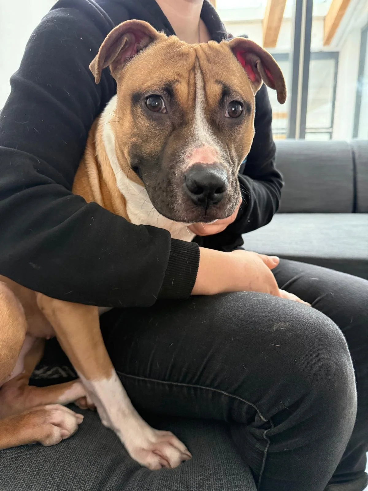 Die Kleine Nika ist gerade einmal 8 Monate alt, eine junge Pitbull-Hündin, die schon jetzt alle Herzen im Sturm erobert.